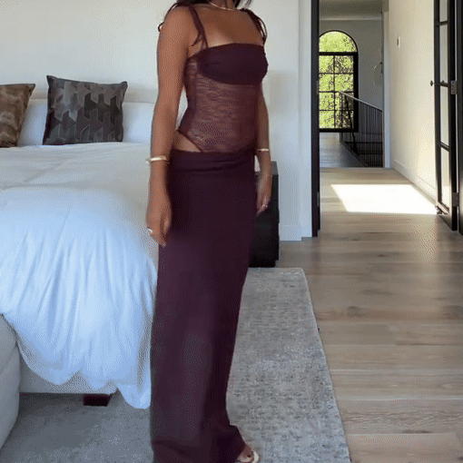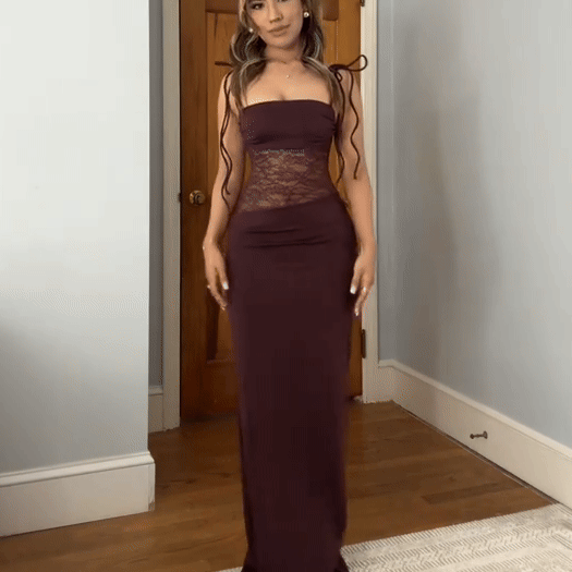 Turn heads everywhere you go with our Margaux Maxi Dress. Its delicate mesh inspired design, coupled with its intricate lace waistband detailing, makes it a show-stopping piece.